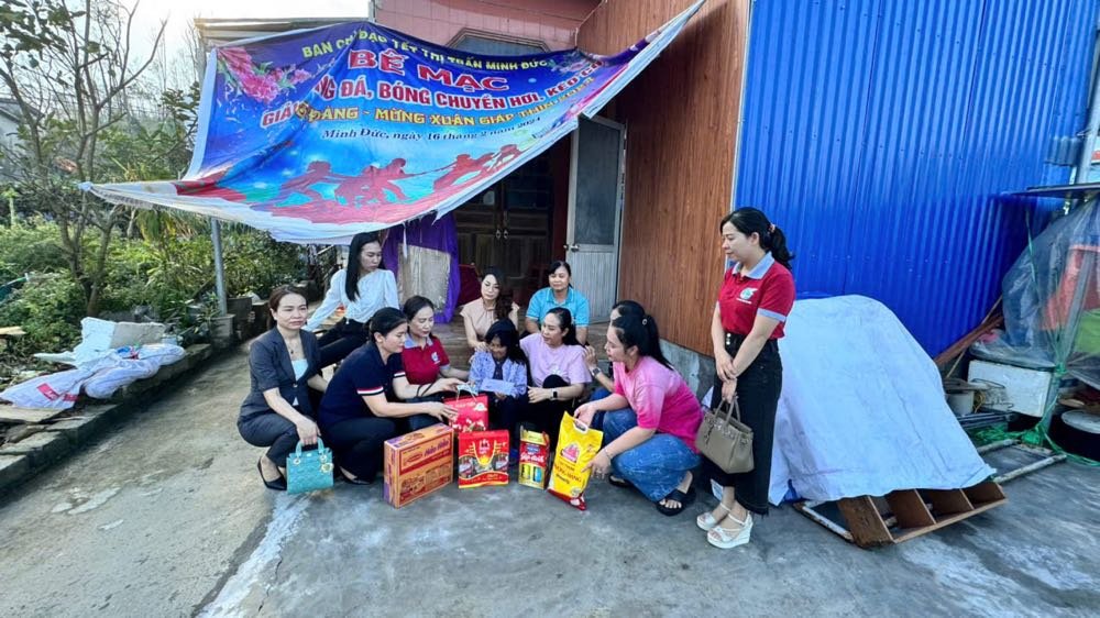 Chiều ngày 18-9 vừa qua, Ban chủ nhiệm câu lạc bộ (CLB) nữ doanh nhân thuộc huyện Thuỷ Nguyên, Thành phố Hải Phòng đã đến động viên thăm hỏi và tặng quà cho 5 gia đình hội viên có hoàn cảnh khó khăn bị ảnh hưởng bởi cơn bão YAGI với tổng trị giá 18 triệu đồng, mong các gia đình vượt qua khó khăn, sớm ổn định cuộc sống.