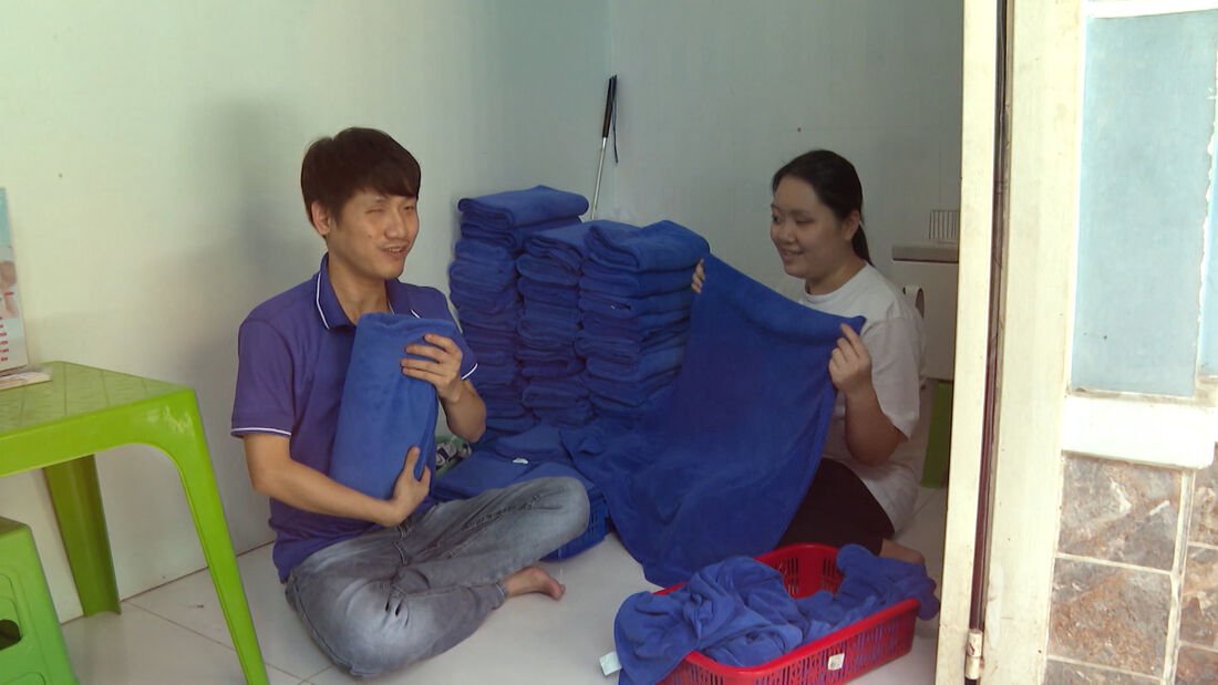 Thiếu vốn, tiệm thiếu thốn đủ thứ: chưa có kệ để khăn, vách thạch cao thấm nước, không đủ phòng nên vợ chồng phải ngủ tạm tại nơi làm việc. Dù vậy, mỗi sáng họ vẫn dắt tay nhau đi phát danh thiếp quanh khu phố, kiên trì bám nghề với hy vọng cuộc sống sẽ khá hơn, phụ giúp gia đình và chuẩn bị hành trang cho tương lai con cái.